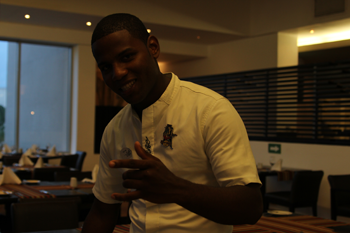 While vacationing, this server was joking with our group during dinner. I got up to take a picture of something else and he asked me to take his picture. So, with the settings I had, I clicked. The dark, very underexposed image was what I got. Since my camera has built in flash, the fastest speed while using flash is 1/250th. When I turned on the flash, the camera adjusted the shutter speed and the result improved.